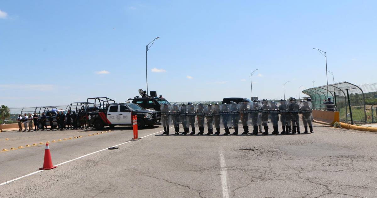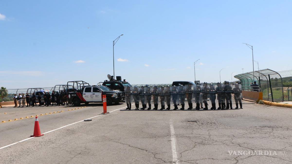A la par se dio el despliegue de elementos y unidades de las diferentes corporaciones de seguridad, incluyendo una unidad blindada Rino, que se colocó sobre el puente, mientras arribaba un equipo antimotines.