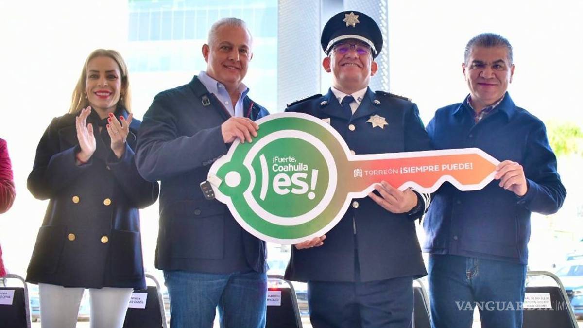 Miguel Riquelme y Román Alberto Cepeda entregan patrullas a la Policía de Torreón