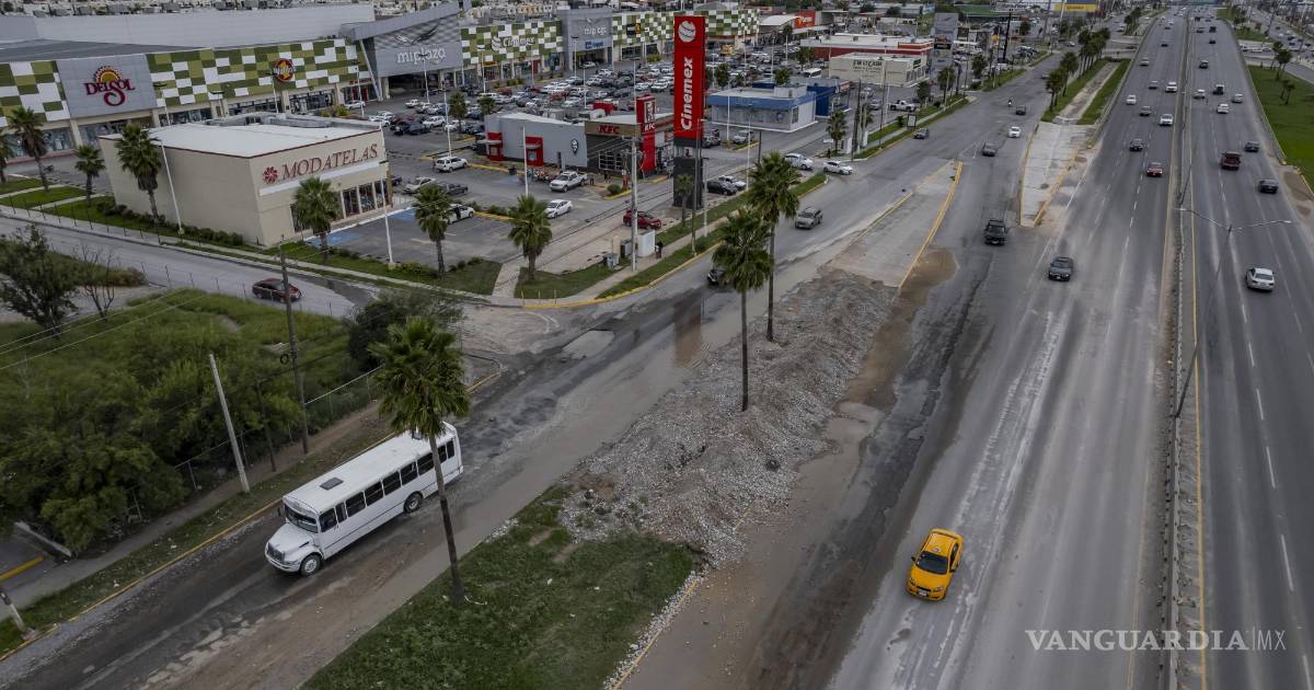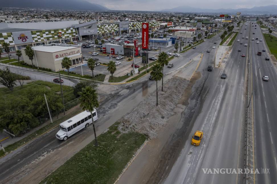 El bulevar Fundadores en Saltillo, en sus laterales a la altura de Mi Plaza Mirasierra volvió a verse afectado por las lluvias del pasado domingo.