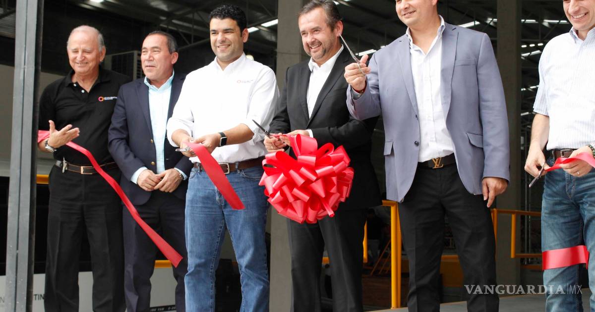 Para hacer oficial el arranque de trabajos dentro de la empresa, el alcalde de Monclova, quien fue el invitado de honor por ser uno de los mejores clientes, procedió al corte de listón con algunos directivos.
