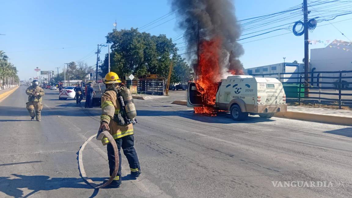 Camión blindado de Tecnoval se incendia en Monclova; no hay heridos ni pérdida de valores