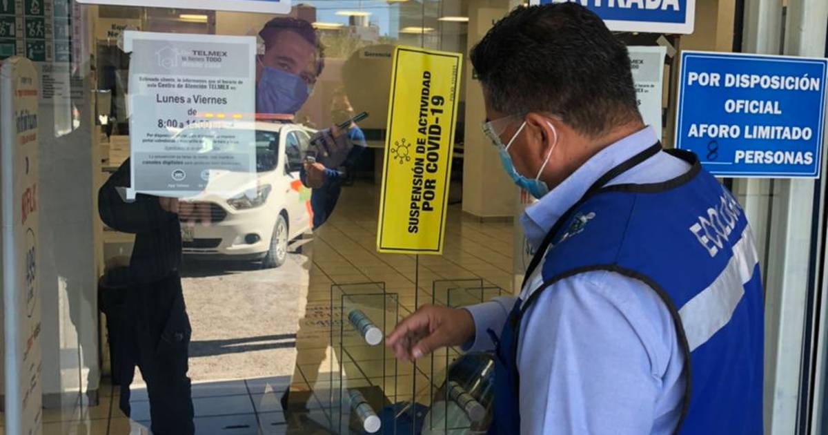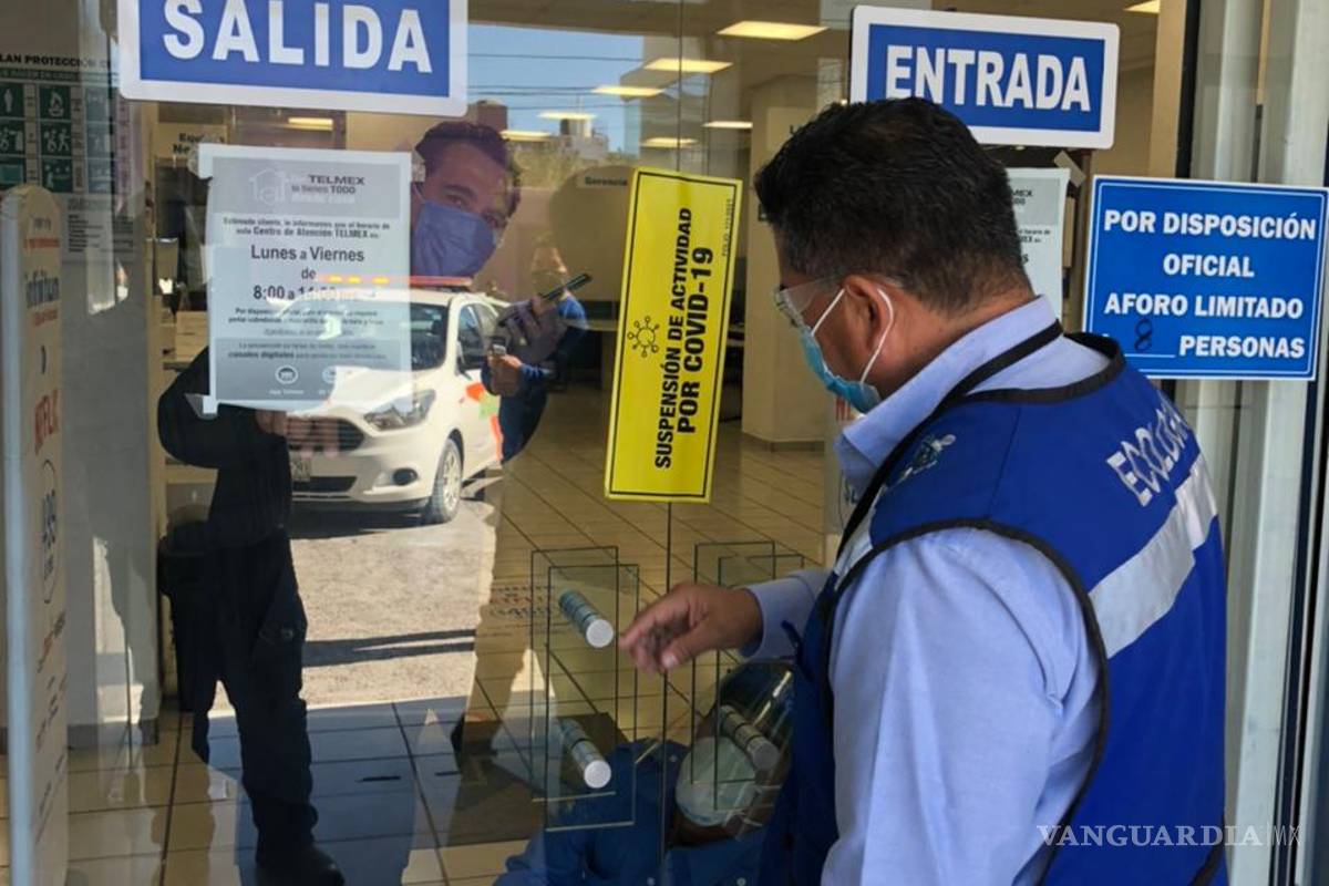 Tras una denuncia ciudadana que indicó una gran aglomeración de personasl al interior de las oficinas generales de Telmex Monclova, elementos de Ecología acudieron al sitio y corroboraron la falta de prevención de contagios de Covid-19, finalmente procedieron a la clausura de las instalaciones.
