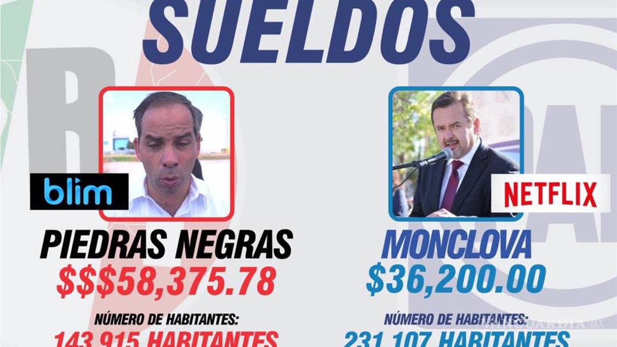 Además de comparar la administración de Purón con la empresa de entretenimiento en línea “Blim” y la de García con “Netflix”, destacaron que el alcalde de Piedras Negras recibe un salario de 58 mil 375 pesos mientras que el alcalde de Monclova 36 mil 200 pesos.