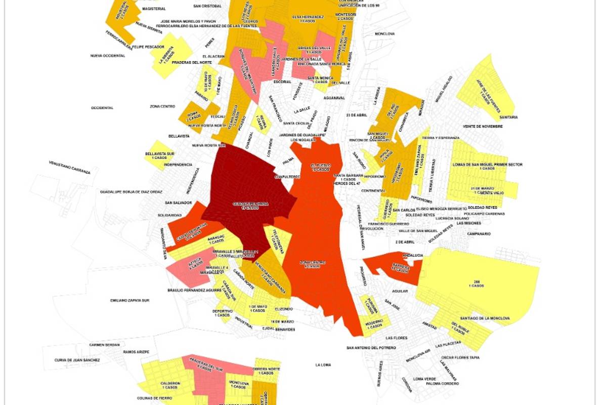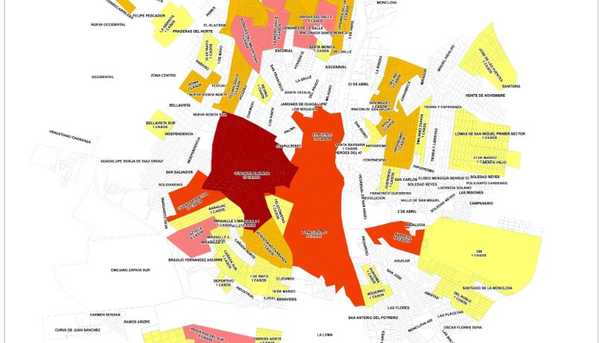 El coronavirus ya se encuentra presente en 70 de casi 300 colonias de Monclova de las cuales se destaca la Guadalupe, El Pueblo, Ciudad Deportiva y Barrera como las que más presentan casos positivos hasta el día de hoy