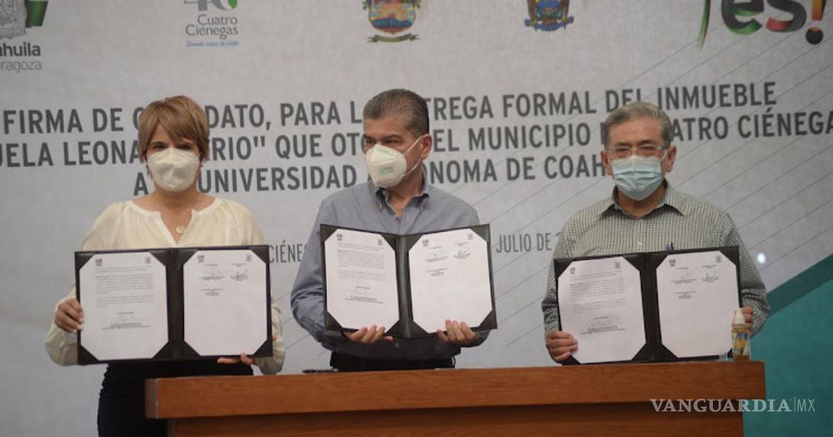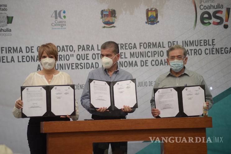 Mientras tanto, la alcaldesa Yolanda Cantú Moncada explicó que es un honor contar con la presencia del Gobernador como testigo de la entrega formal del inmueble que otorga el Municipio de Cuatro Ciénegas a la UA de C, para que los jóvenes que así lo decidan puedan estudiar en las aulas.