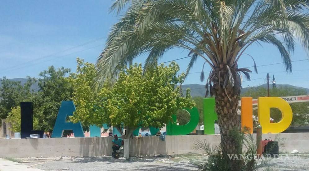 Lamadrid, Coahuila.- El alcalde Andrés Vázquez Garza dio a conocer que ya se cuenta con el anuncio monumental turístico que da la bienvenida a Lamadrid, ubicado en la calle principal.