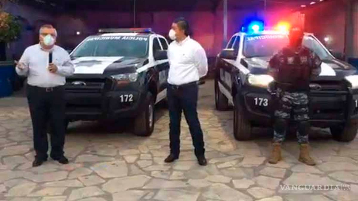 El alcalde Jesús Alfredo Paredes estuvo realizando la entrega de las unidades en la comandancia junto al director de la Policía Municipal Fernando Olivas y al comandante de GATEM Carlos Reyes Cardona.