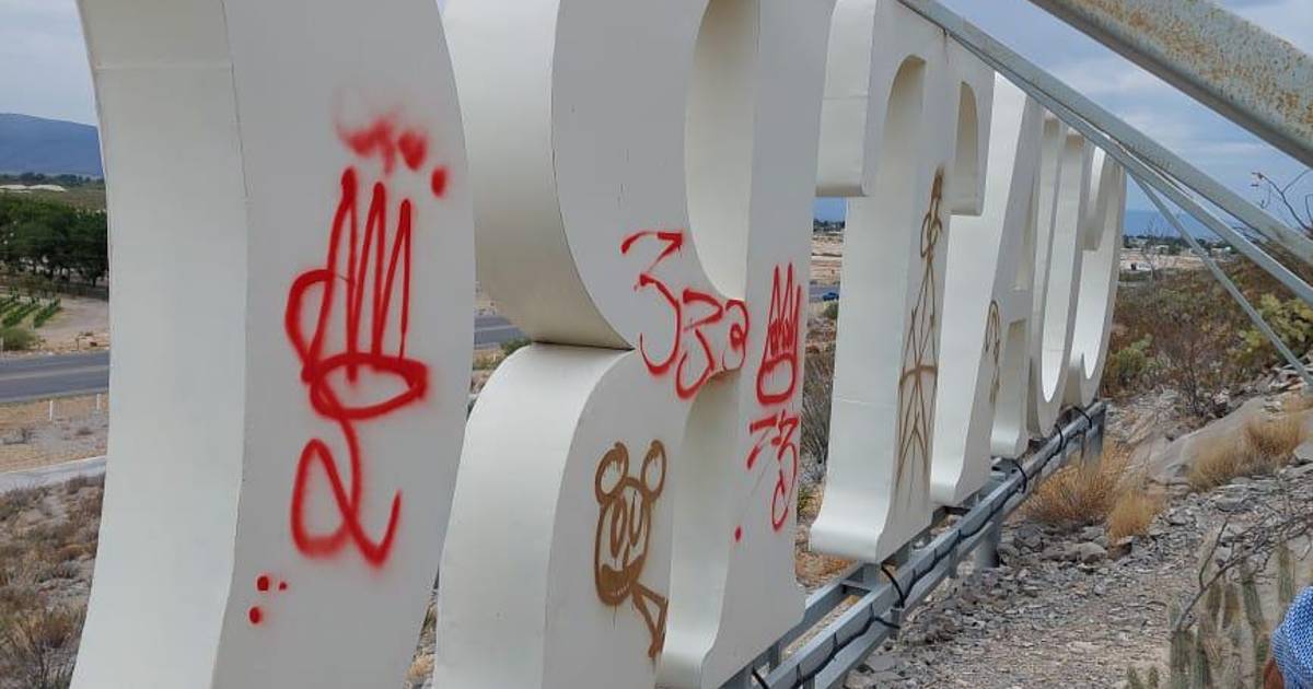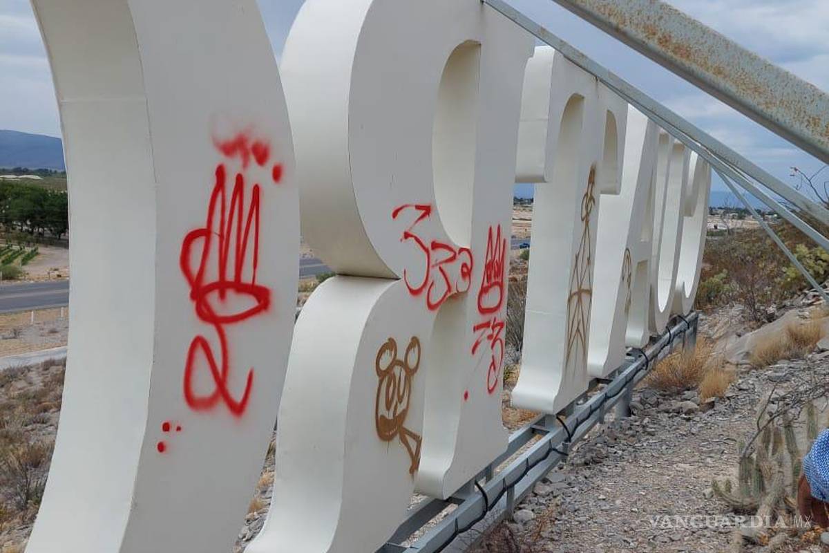 CUATRO CIÉNEGAS, COAH.- Vándalos lograron pintar grafitis en las letras de identidad ubicadas a la entrada del Pueblo Mágico de Cuatro Ciénegas, Coahuila.