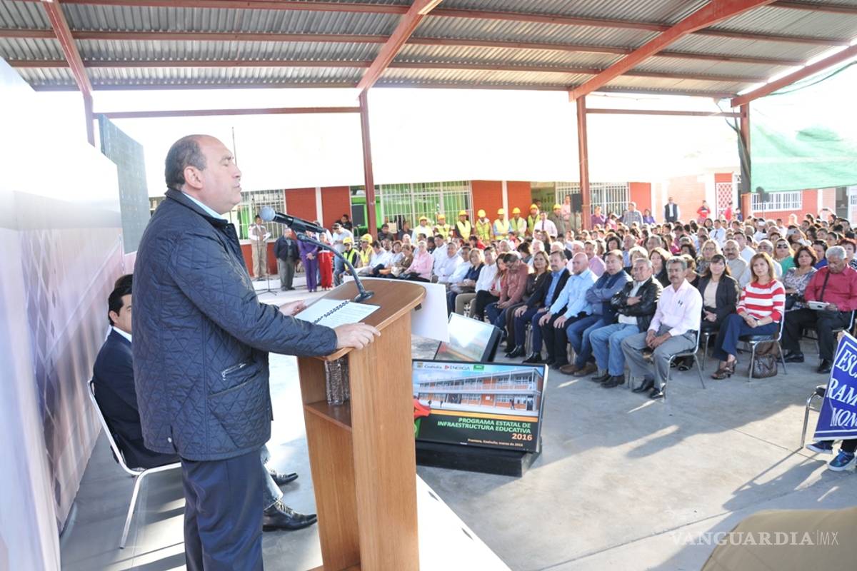 Frontera, Coahuila.- El gobernador Rubén Moreira Valdez anunció la inversión de más de mil millones de pesos a través del Programa Estatal de Infraestructura Educativa 2016 que se aplicará en municipios de Coahuila.