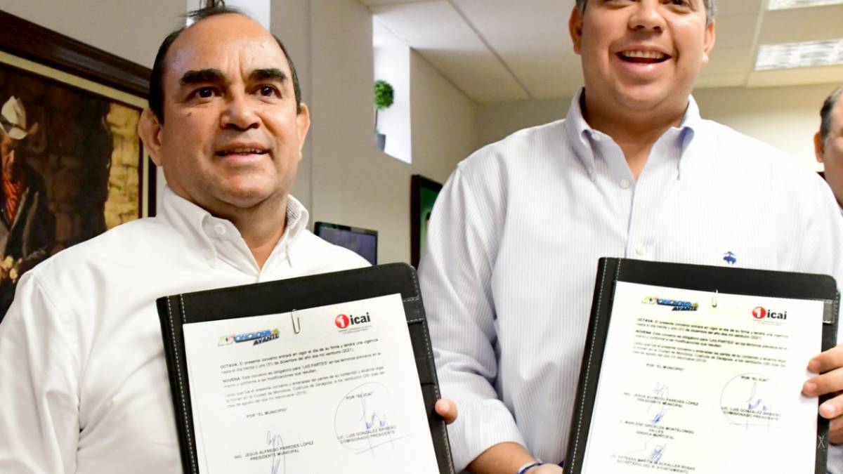 En el despacho del alcalde Alfredo Paredes López se llevó a cabo la firma del convenio con la presencia del presidente del consejo del ICAI, Luis González Briseño; el secretario del Ayuntamiento, Martín Blackaller; el secretario técnico, Jaime Díaz; y la síndico Marlene Montelongo, entre otras autoridades