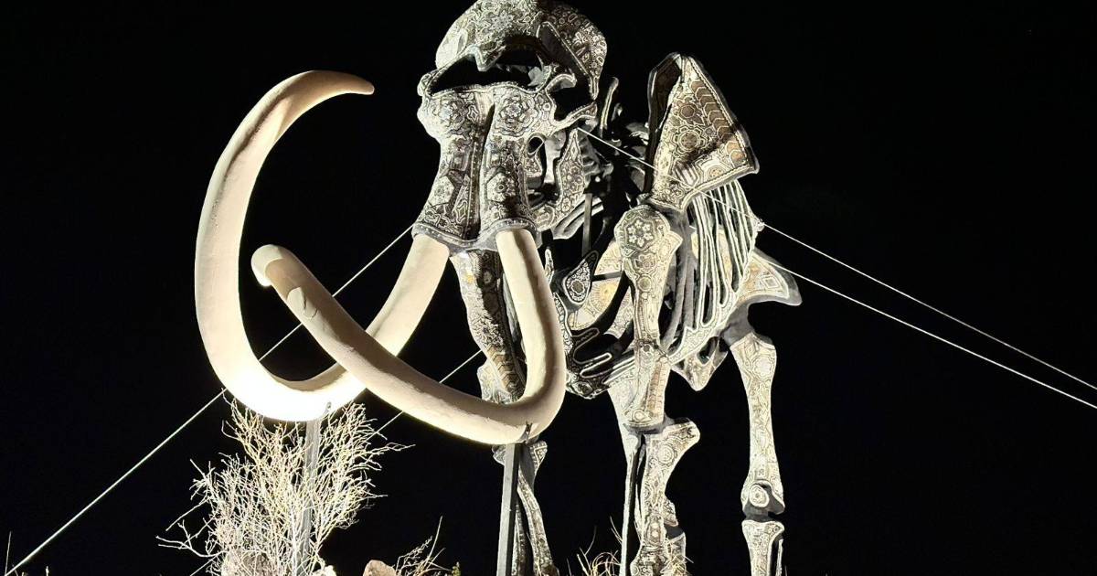 CUATRO CIÉNEGAS, COAH.- Un mamut colombino gigante es ahora parte de las Minas de Mármol en Cuatro Ciénegas, donde se podrá admirar esta majestuosa pieza en lo más alto del emblemático parque. Desde hace algunos días, la mina alberga una impresionante escultura instalada por el Grupo 1800. Esta pieza única transporta a los visitantes a los orígenes de la vida en el planeta, en un parque natural que fue abandonado en la década de los 90, pero que hoy se ha convertido en uno de los principales destinos turísticos del Pueblo Mágico de Cuatro Ciénegas.