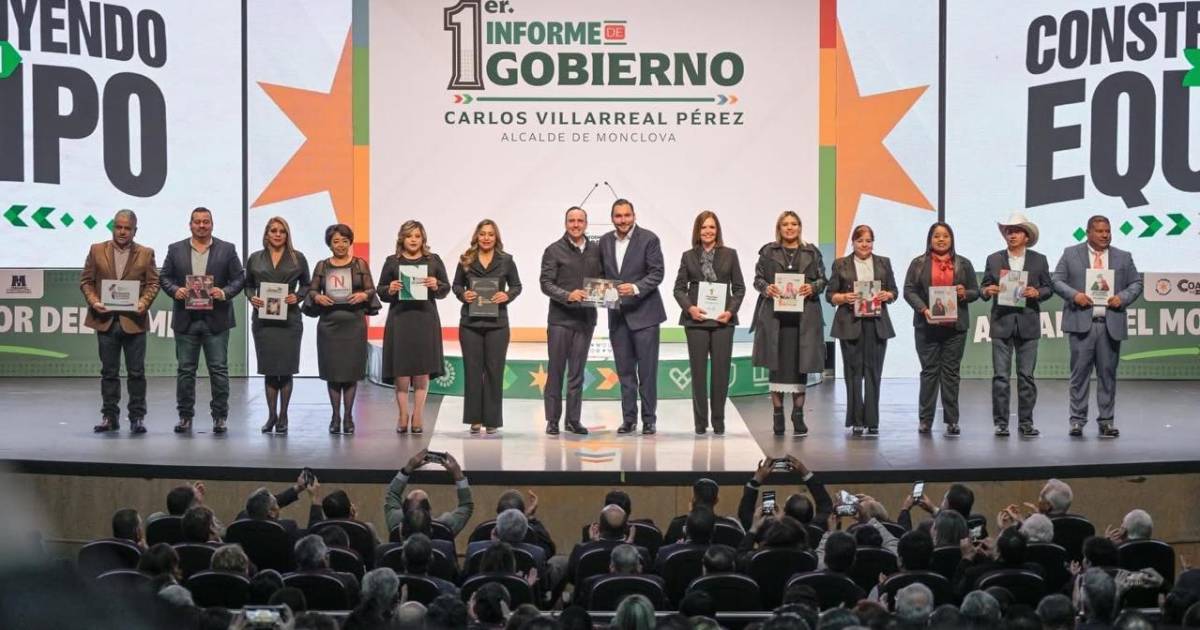 MONCLOVA, COAH.- Ante un Teatro de la Ciudad Raúl Flores Canelo abarrotado, el alcalde Carlos Villarreal rindió su Primer Informe de Gobierno, donde destacó una inversión histórica superior a los 700 millones de pesos aplicada durante 2025 en seguridad, infraestructura, desarrollo social, turismo y economía.
