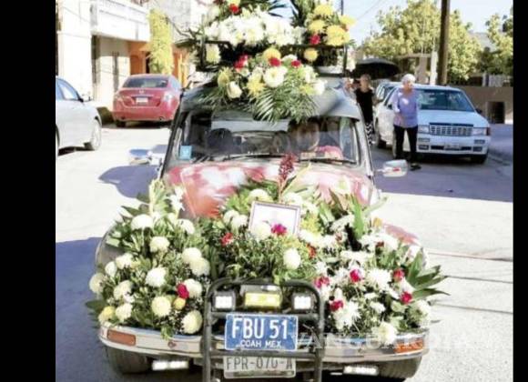 MONCLOVA, COAH.- La vida de Armando Villastrigo Martínez, de 69 años, fue recordada de manera especial por su familia, quienes le rindieron homenaje decorando su clásico Volkswagen, un “vochito” que él conducía a diario, con arreglos florales en su último adiós en Monclova.