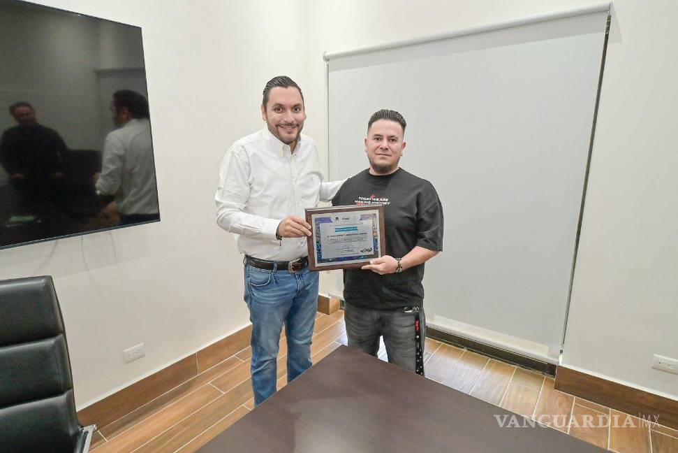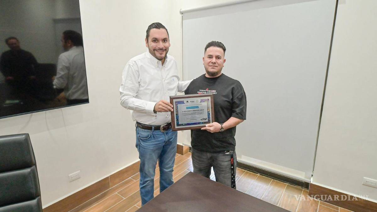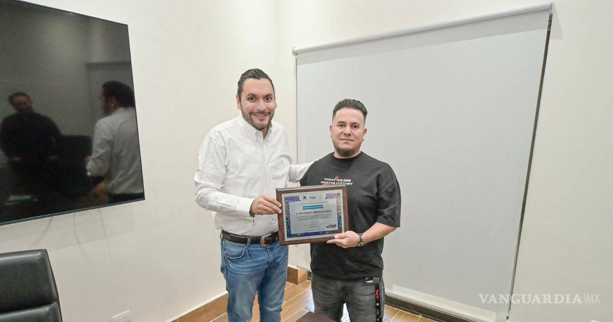 MONCLOVA, COAH.- El alcalde Carlos Villarreal Pérez entregó un reconocimiento a Efeck, joven monclovense que, con un grafiti del Dios Tláloc, logró ganar el primer lugar del Festival Kardo 2025, realizado el pasado mes de agosto en la ciudad de Stávropol, Rusia.