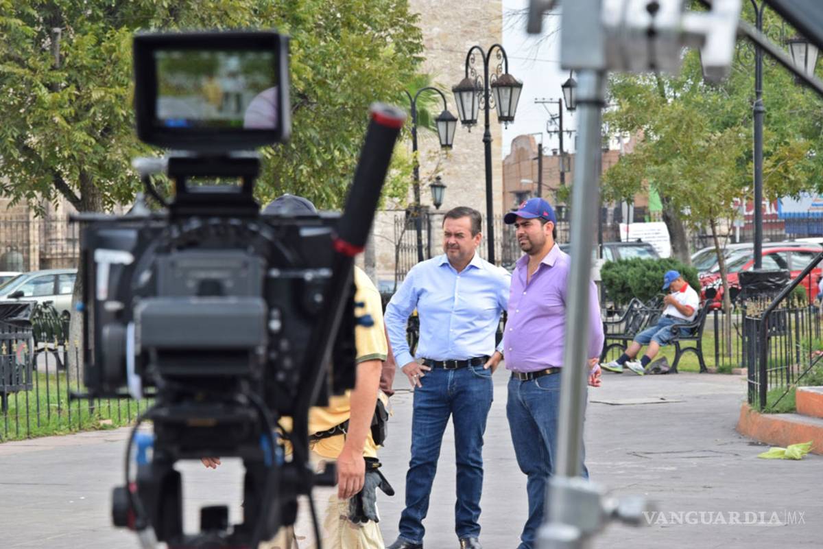Las luces y cámaras que se instalaron en el primer cuadro de la ciudad llamaron la atención de los ciudadanos, los cuales se acercaron para observar la filmación e incluso aprovecharon para saludar al edil de Monclova.