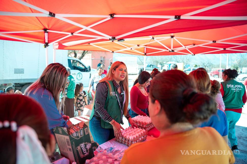 CASTAÑOS, COAH.- Productos de la canasta básica a bajo costo llegaron a las familias de los ejidos Dolores y Santa Teresa, en Castaños.