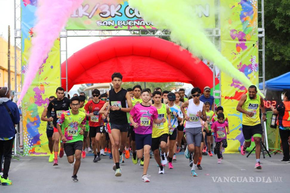 SAN BUENAVENTURA, COAH.- Los habitantes de San Buenaventura disfrutaron de una explosión de colores y diversión durante la exitosa edición de la carrera “The Color Run”, organizada por el Departamento de Deportes, Turismo e Icojuve.