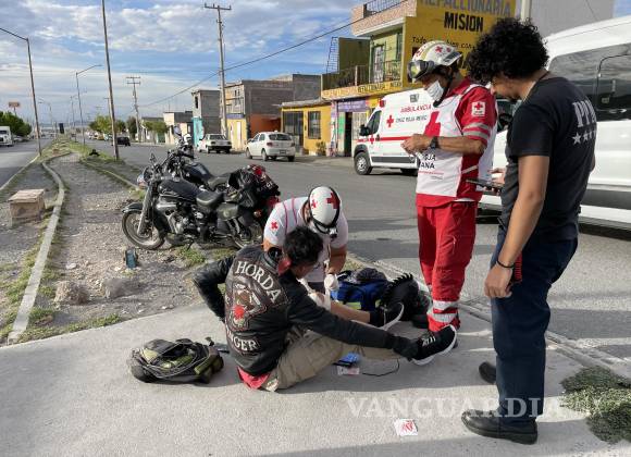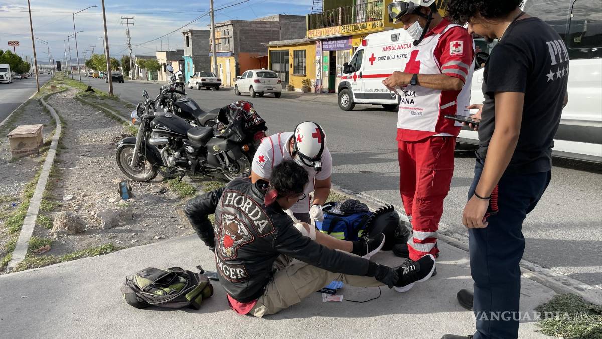 Motociclista resulta herido tras brincar bordo sin señalización en la Misión Cerritos de Saltillo