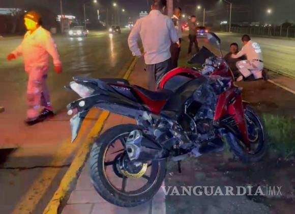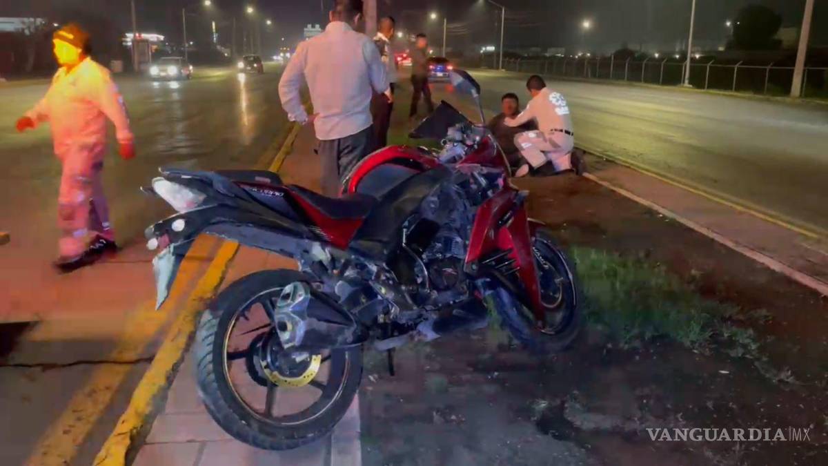 Motociclista termina en un camellón tras perder el control de su unidad, al norte de Saltillo