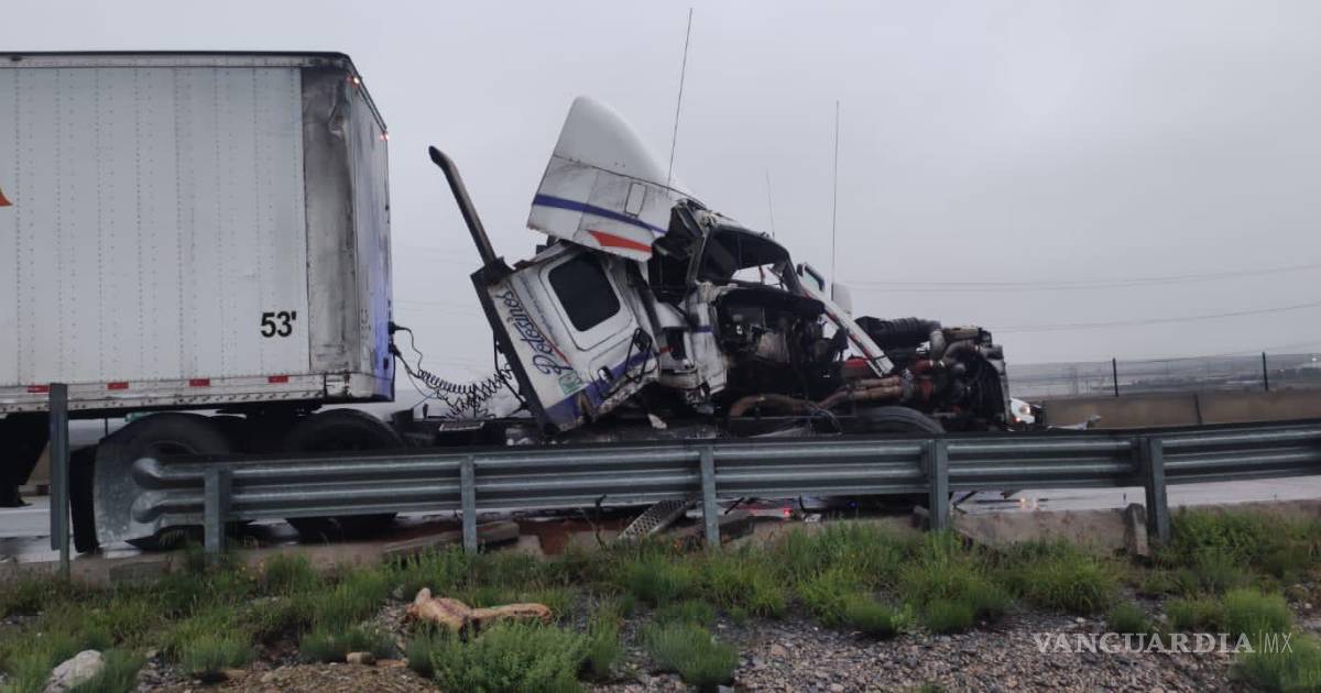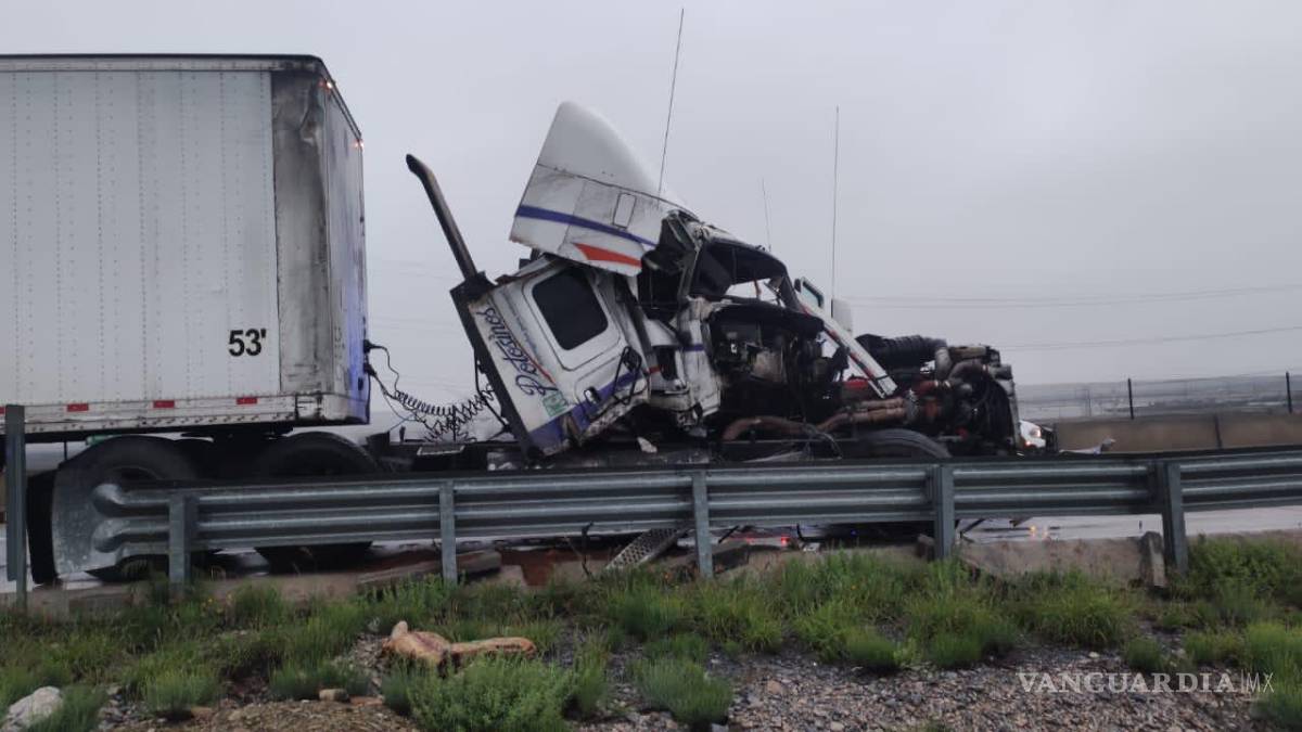 Moviliza a Bomberos de Ramos Arizpe choque de tráileres en libramiento, reportan un herido y severos daños