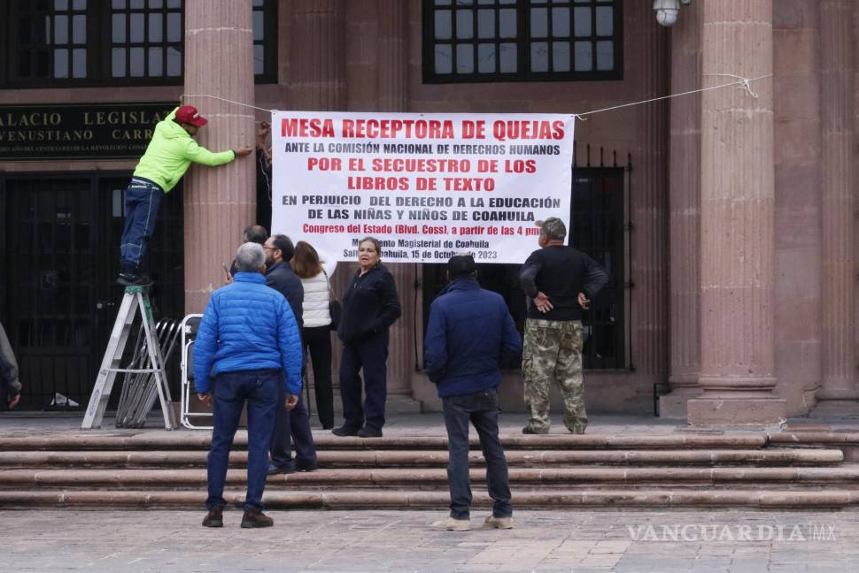 El Movimiento Magisterial de Coahuila se sumó a la campaña en contra de los libros de primaria y secundaria entregados por el Gobierno del Estado iguales que los del ciclo 2022-2023 y piden que se entreguen los enviados por el Gobierno Federal.
