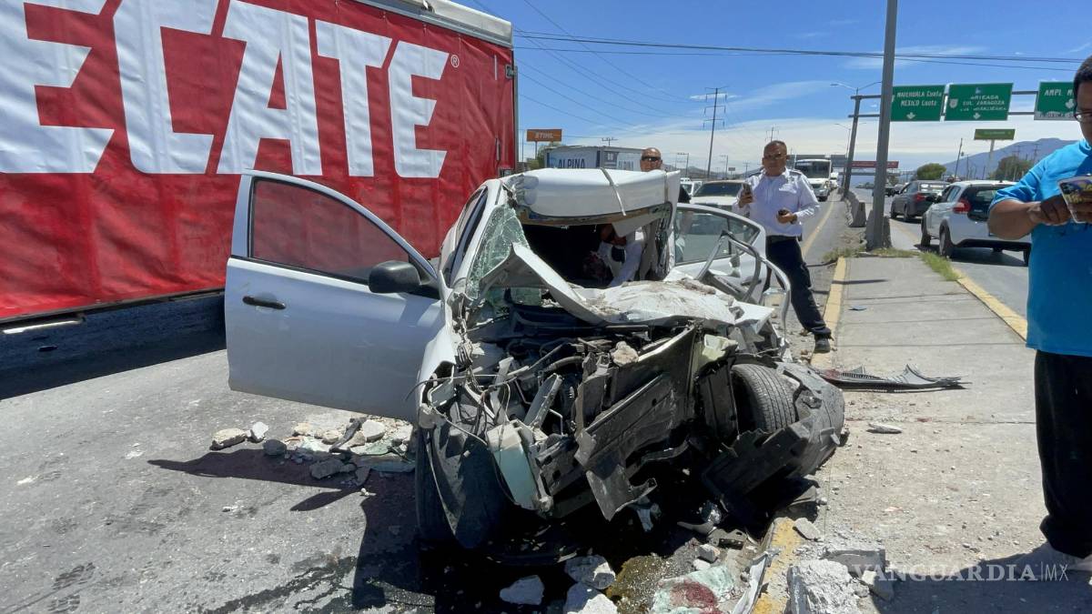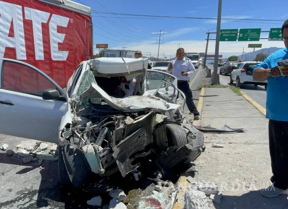 Prensado en el interior de su auto, terminó un automovilista que circulaba por el bulevar Fundadores con dirección a Periférico, al impactar un camión de carga, proyectándolo hacia los carriles contrarios y resultando gravemente lesionado en Saltillo.
