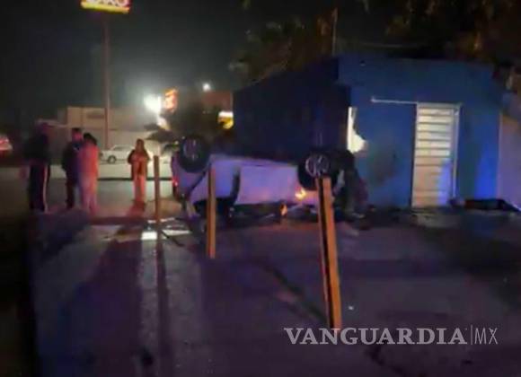 Mujer a exceso de velocidad choca y vuelca frente a salón de fiestas infantiles en J Mery, Saltillo