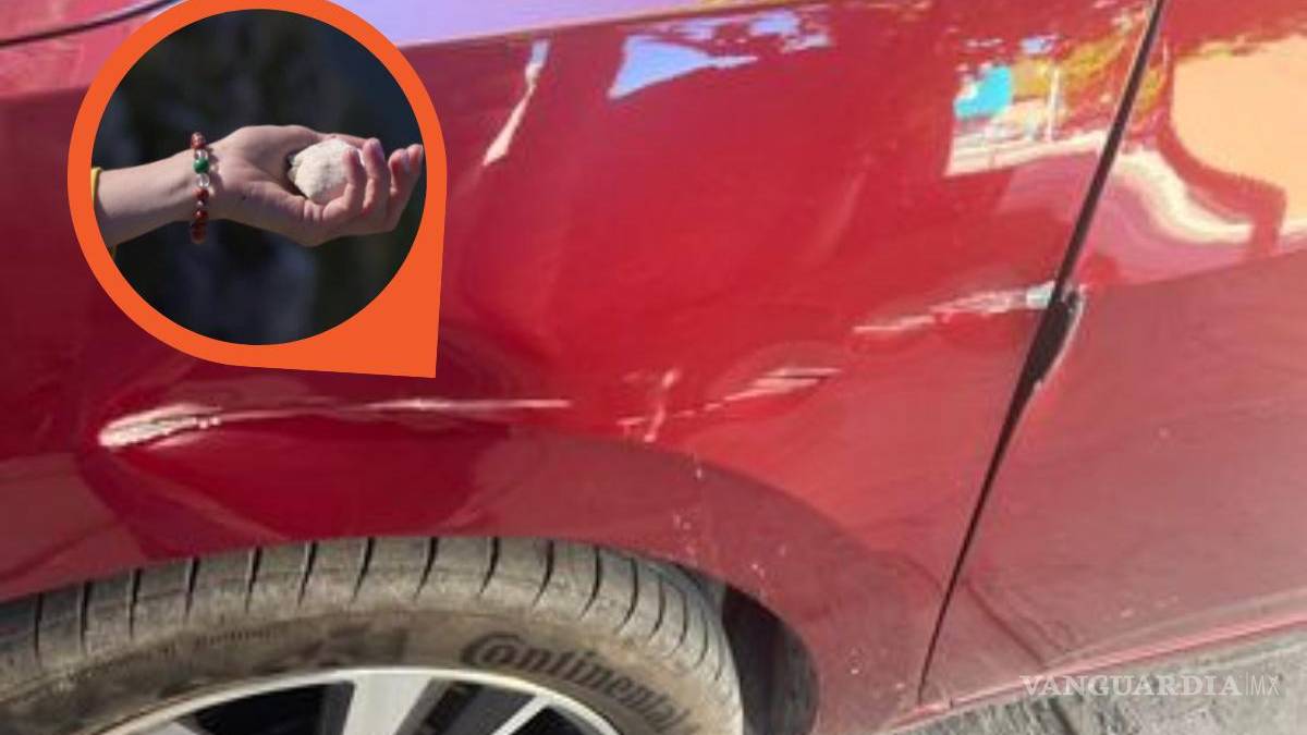 El usuario compartió a este medio un par de videos de los hechos, así como fotografías de los daños que una de estas piedras dejó en su automóvil.