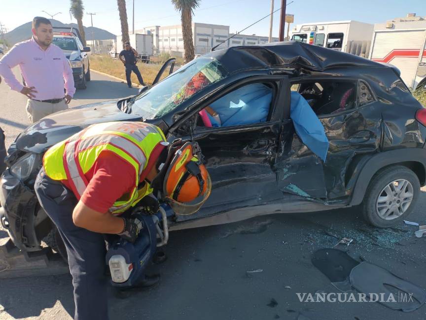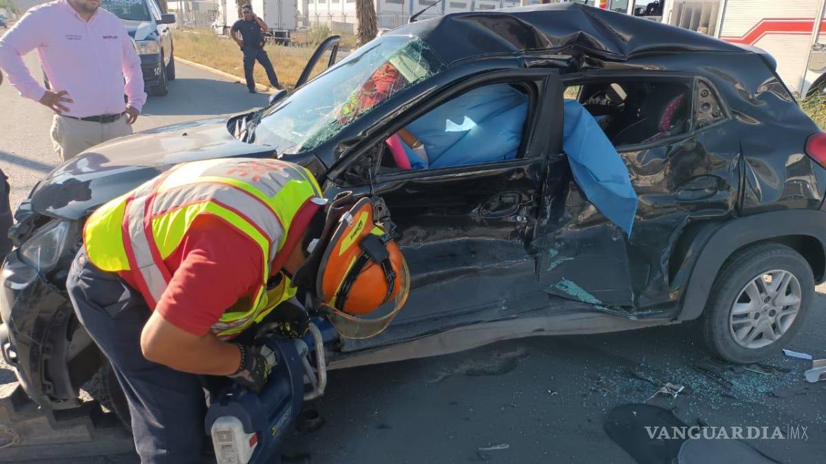 Fue necesaria la intervención del equipo de rescate urbano de Protección Civil y los bomberos para liberar a una mujer de 32 años de edad, que se encontraba atrapada en su vehículo Renault. Posteriormente, fue trasladada de urgencia al Hospital Christus Muguerza de Saltillo para recibir atención médica.