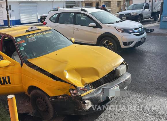 Mujer choca por alcance a taxista en Zona Centro de Saltillo