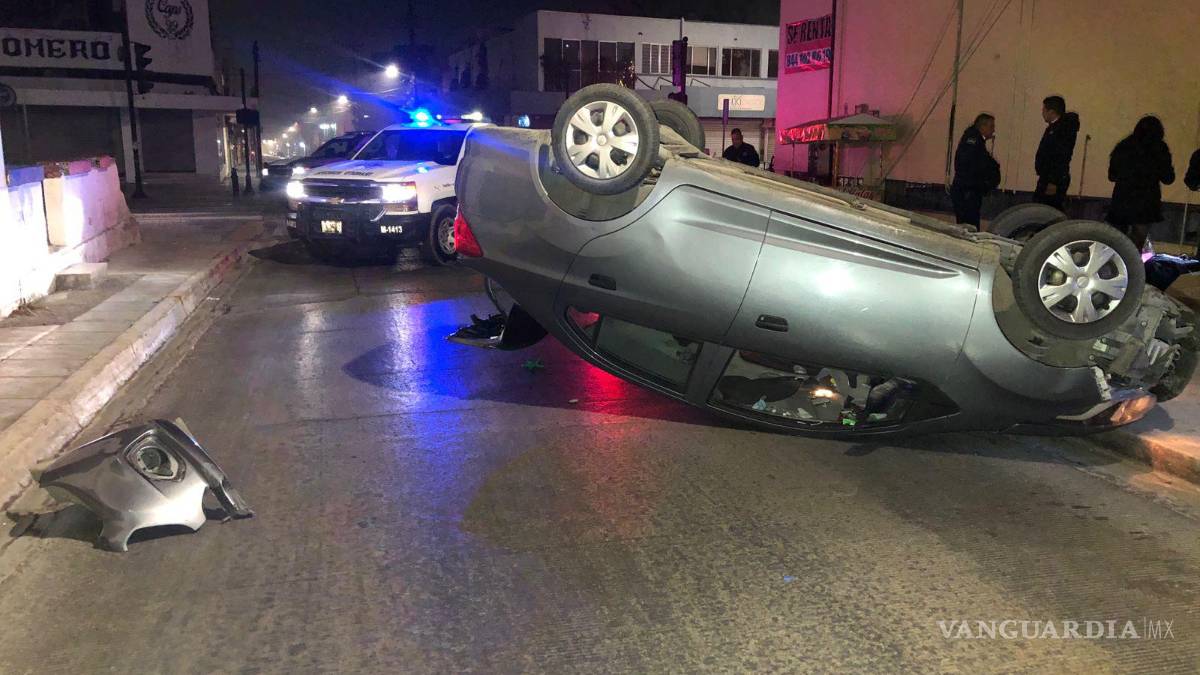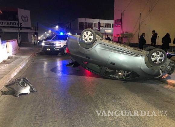 Mujer dormita al volante y vuelca, en pleno Centro de Saltillo