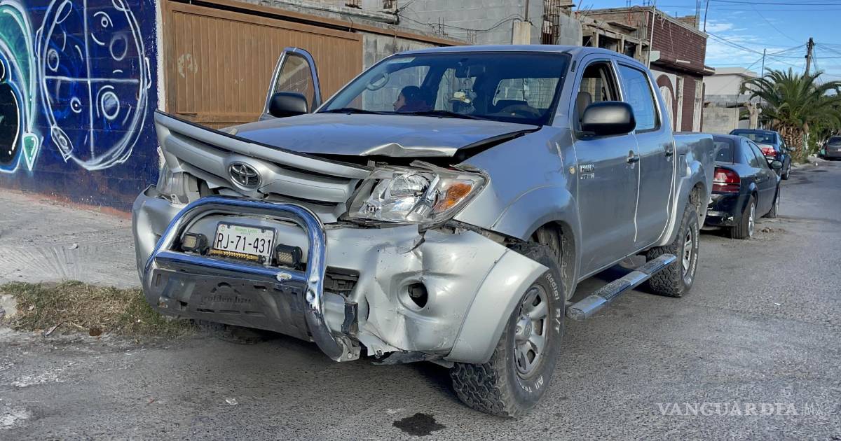 Al no obedecer la señal de alto de metal, una mujer causó un accidente con su camioneta al cruzarse frente a otra conductora en las calles de la colonia Zaragoza, al oriente de Saltillo, la mañana de este miércoles.