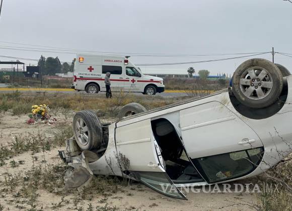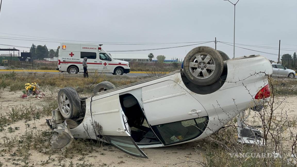 Mujer resulta lesionada tras accidente al norte de Saltillo; se sale del camino y vuelca