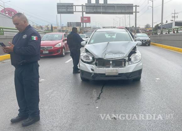Mujer se confunde e impacta por alcance a patrulla estacionada en periférico LEA de Saltillo