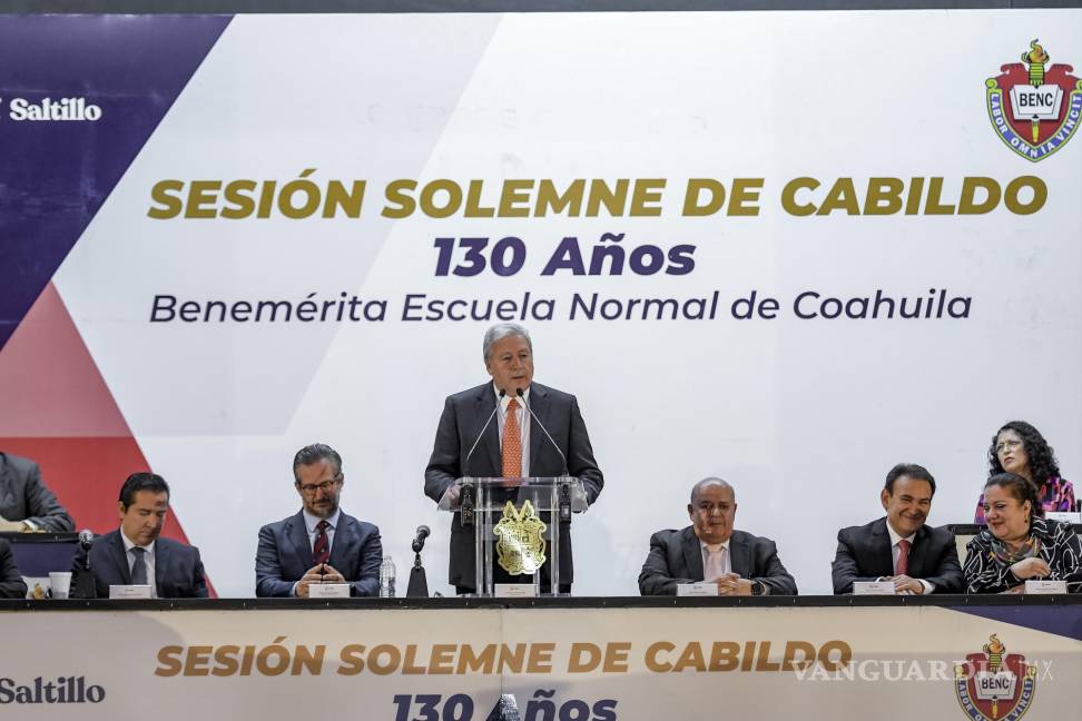 “Desde su fundación ha formado maestras y maestros, es símbolo del pasado, presente y futuro, representa una sólida base de capital humano, un pilar fundamental para el desarrollo económico y social, es un bastión del crecimiento personal y profesional. Su lema ‘El trabajo todo lo vence’ es más que simples palabras, es un llamado a la acción”, acotó, y añadió que Saltillo es polo de desarrollo económico y en esto es esencial el contar con jóvenes académicamente mejor preparados, un proceso donde el trabajo docente es prioridad.