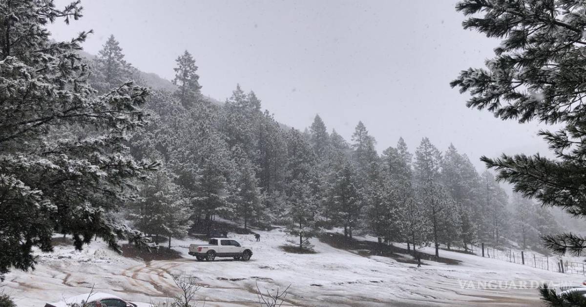 La mañana de este sábado, la Sierra de Arteaga amaneció bajo un manto blanco debido a la presencia del frente frío número 35, que ha provocado caída de nieve y bajado el termómetro hasta los cero grados Celsius en el Cañón de los Oyameles y otras áreas altas de la región.