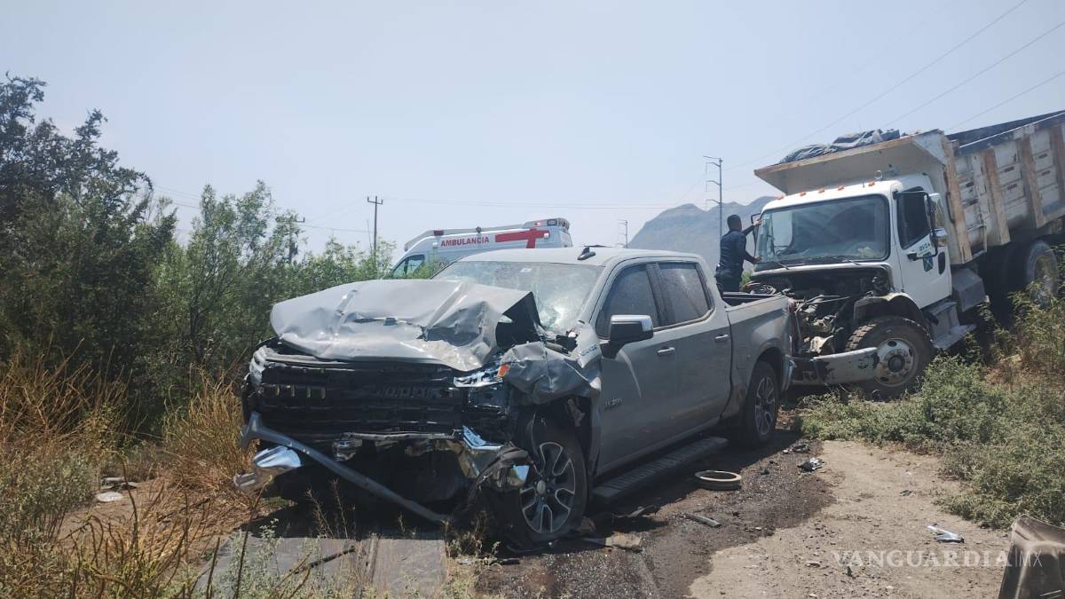 Cinco personas fueron valoradas por paramédicos del cuerpo de bomberos de Ramos Arizpe, luego de un accidente entre una camioneta y un camión de volteo en la carretera a Monclova.