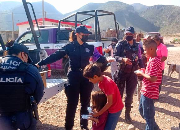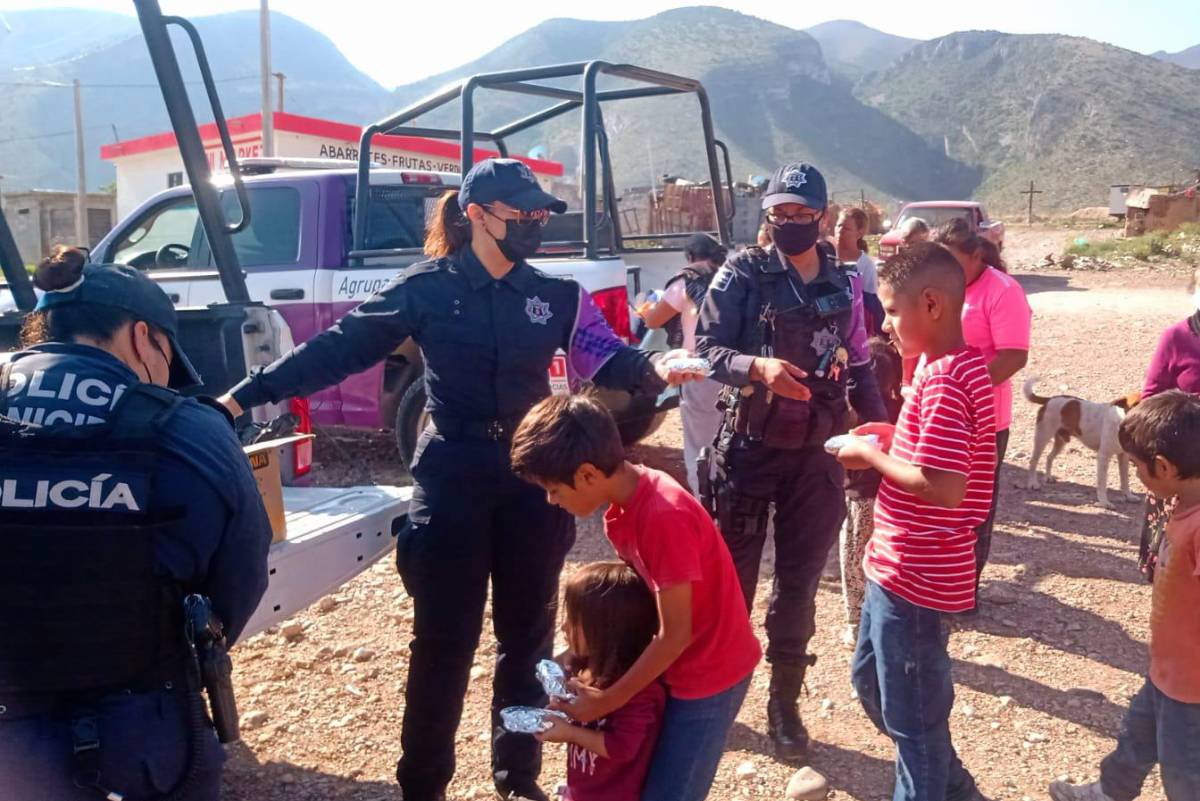 Oficiales del Agrupamiento Violeta lleva refrigerios y donaciones a colonia vulnerable de Saltillo