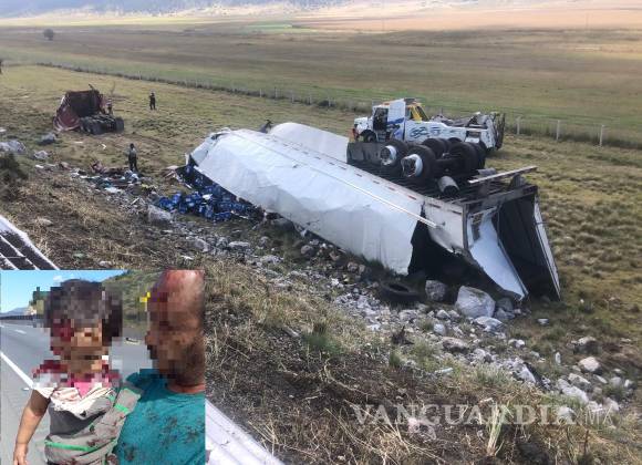 Padre e hija de 3 años salvan la vida tras una volcadura en la carretera federal 57 en Coahuila