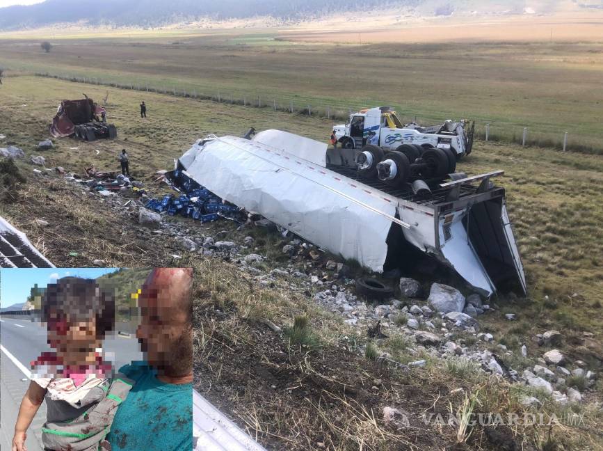 El conductor, Édgar A., de 47 años, y su bebé de 3 años fueron atendidos por paramédicos de Caminos y Puentes Federales (Capufe) y llevados de urgencia a la Clínica 1 del Seguro Social.