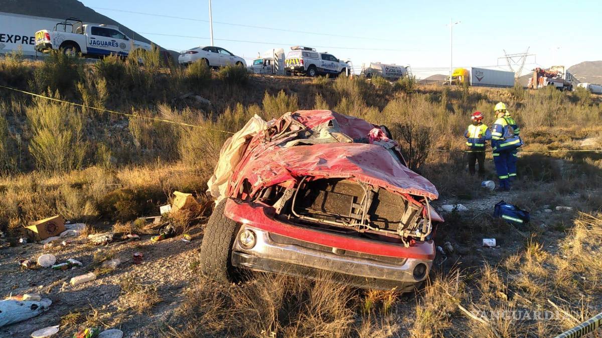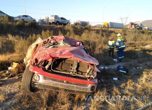 Paisanos pierden la vida en volcadura en la carretera Monterrey-Saltillo