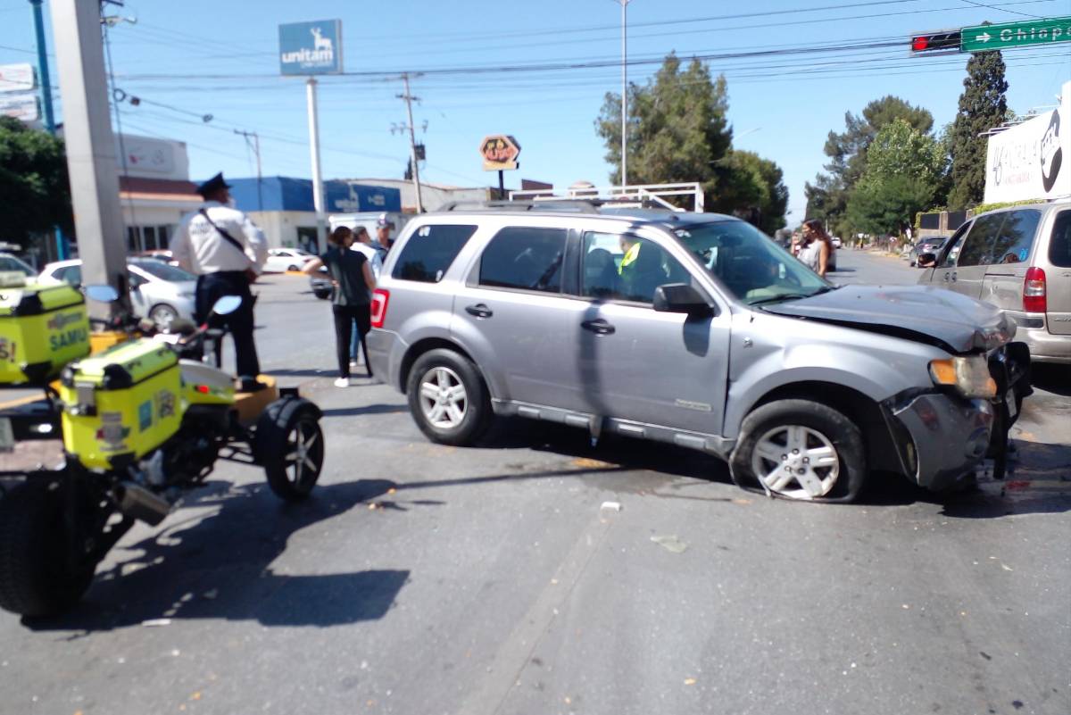 El percance se registró alrededor de las 16:00 horas del lunes, al momento en que un automóvil Honda Civic, conducido por un menor de edad, circulaba de poniente a Oriente por la calle de Chiapas y al llegar al cruce con el bulevar V. Carranza avanza ante la luz verde del semáforo siendo impactado momentos después por una camioneta Ford Escape con placas de Texas, cuyo conductor circulaba de norte a sur por el bulevar y menciona que también tenía luz verde.