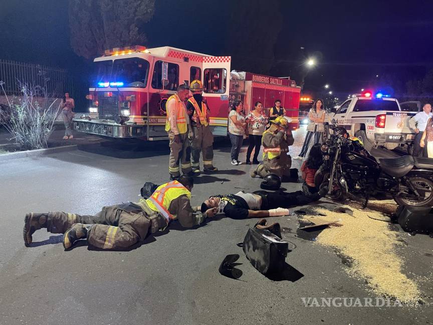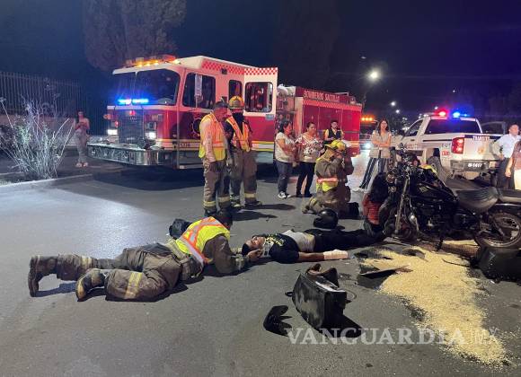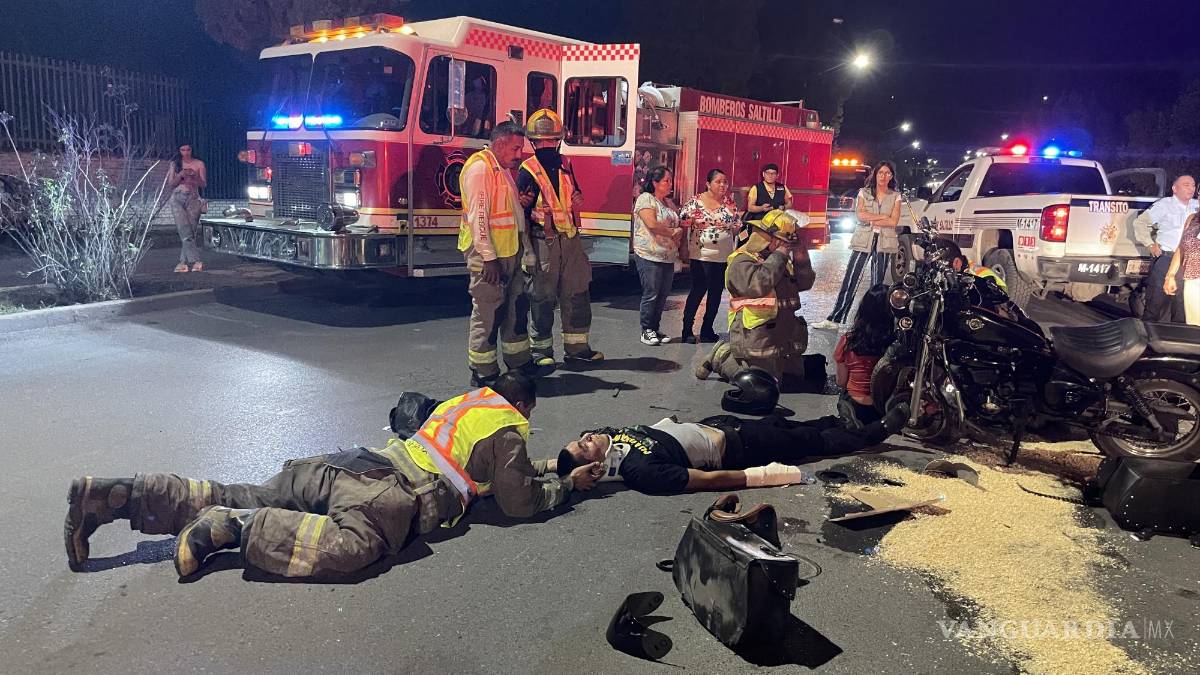Pareja resulta herida al ser derribados de su motocicleta en avenida Universidad en Saltillo