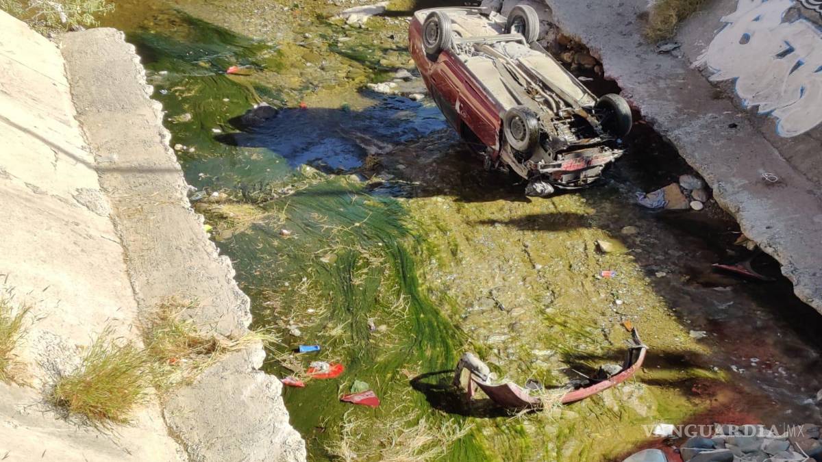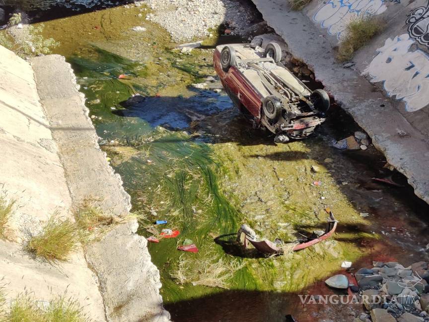Pareja sufre volcadura en bulevar fundadores de Saltillo y cae a arroyo