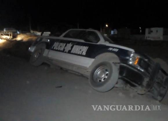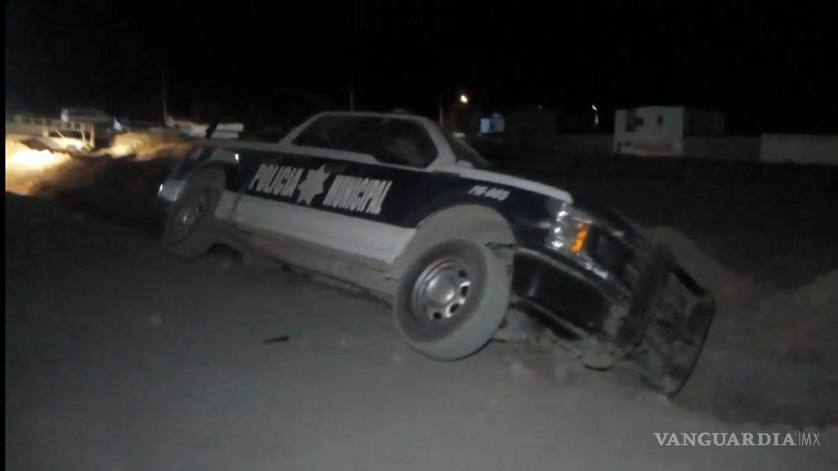 Patrulla Municipal de Parras se dirige a disipar riña y cae en zanja; oficiales resultan heridos