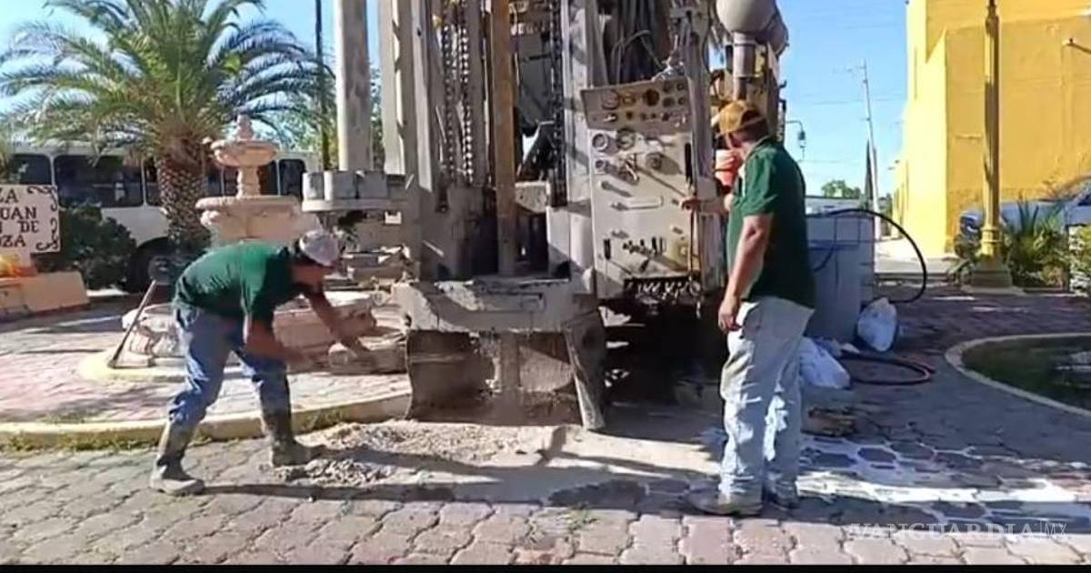 Autoridades de Parras iniciaron la perforación de un pozo en la plaza Juan Agustín de Espinoza para atender el desabasto de agua en colonias del poniente y norponiente