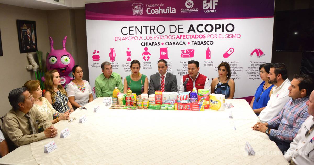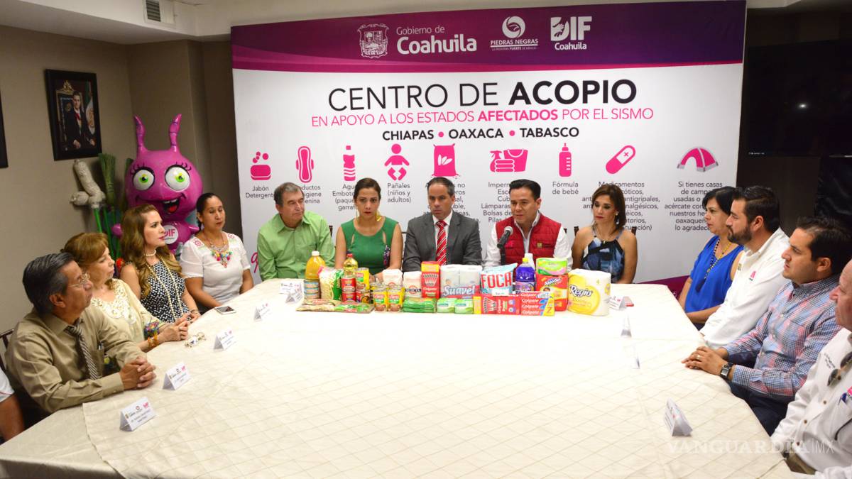 Junto con el alcalde de Piedras Negras, Fernando Puron, anunciaron la instalación de seis centros de acopio de víveres para los mexicanos damnificados por el sismo del pasado 7 de septiembre en los Estados de Chiapas, Oaxaca y Tabasco.