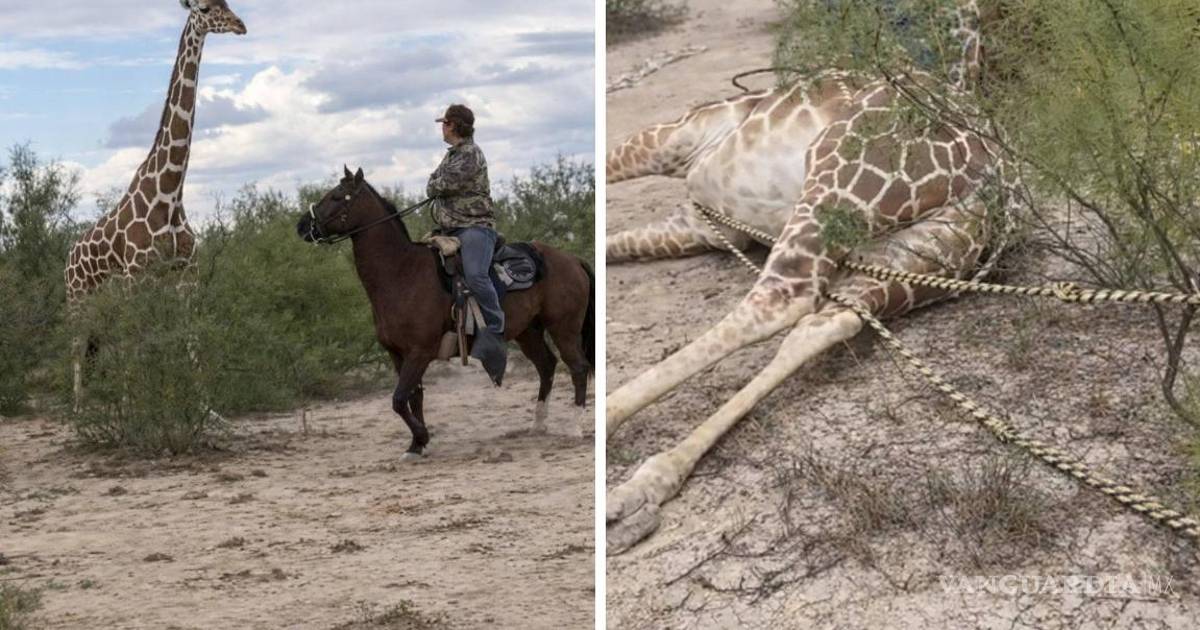 PROGRESO, COAH.- Una escena captada en video en la serranía del municipio de Progreso encendió la polémica en redes sociales, luego de que se difundieran imágenes donde varios hombres a caballo persiguen y someten a una jirafa en plena zona rural.