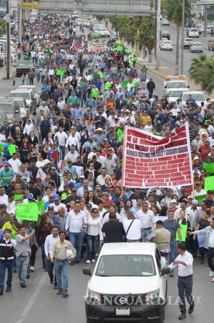 Al tiempo que se iniciaba la protesta de los carboneros al norte del estado, en Monclova comenzó otro movimiento, esta marcha de más de 3 mil personas la formaron dependientes de forma directa o indirecta de la empresa Altos Hornos de México.