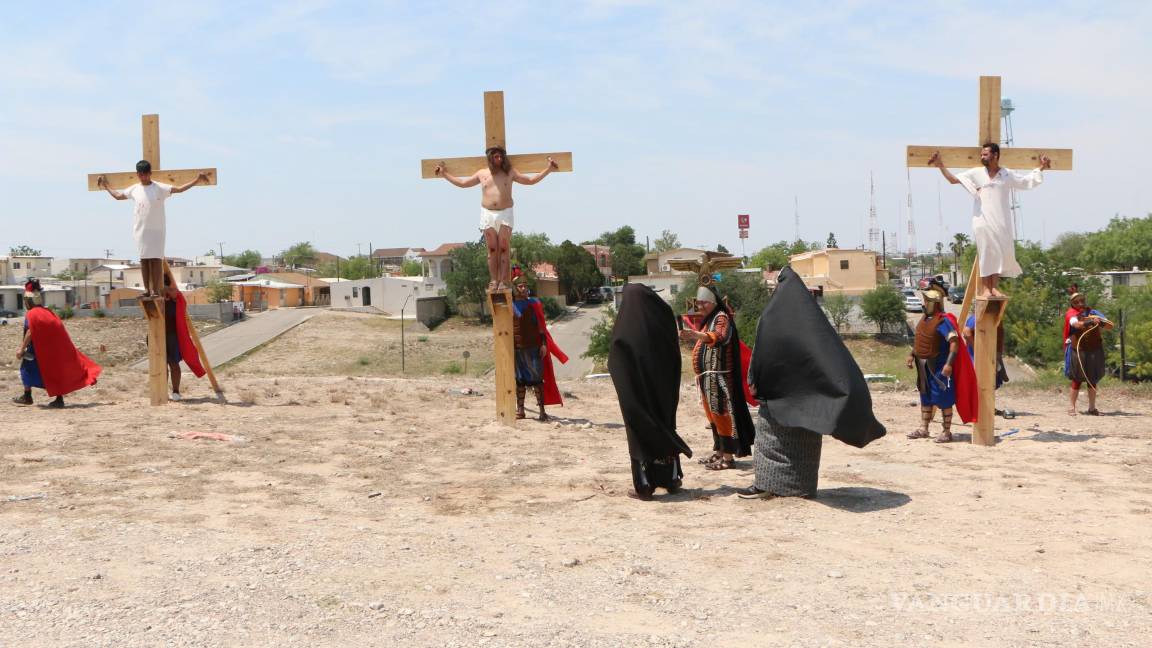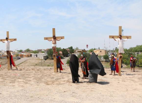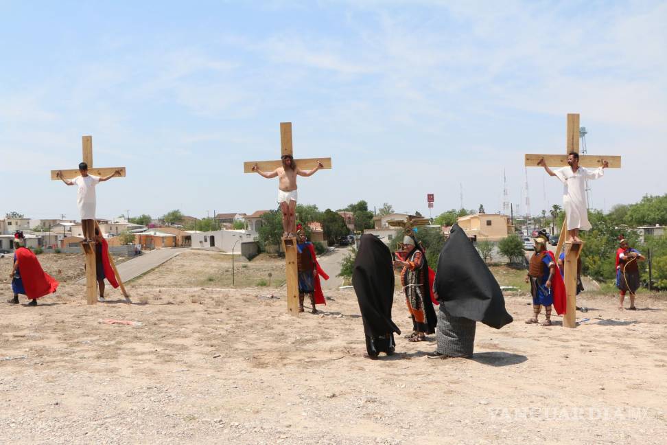 PIEDRAS NEGRAS, COAH.- Al igual que en diversas partes del mundo y en México, Piedras Negras vivió las celebraciones de la Semana Santa con una serie de escenificaciones sobre la muerte y pasión de Cristo, donde cientos de fieles participaron activamente.
